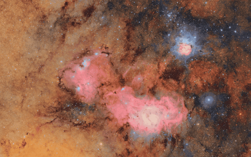 Be enchanted by yet another unbelievable capture! The Vera C. Rubin Observatory (NSF-DOE) has released stunning images of stellar nurseries. The record below is the result of a composition of 678 distinct exposures, obtained over the course of just over seven hours. As detailed by the Observatory, the image reveals clouds of gas and dust in hues of pink and orange that comprise the Trifid and Lagoon nebulae, both located thousands of light-years away.